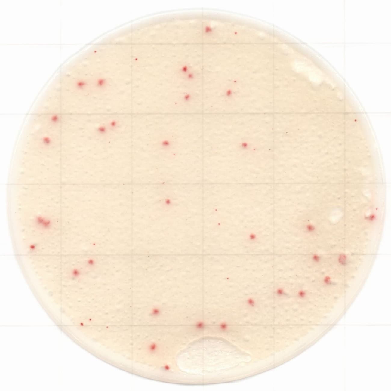 コロニーが赤く発色するため、食品残渣が多い場合や着色がある場合でも、コロニーの判別、カウントが容易です。